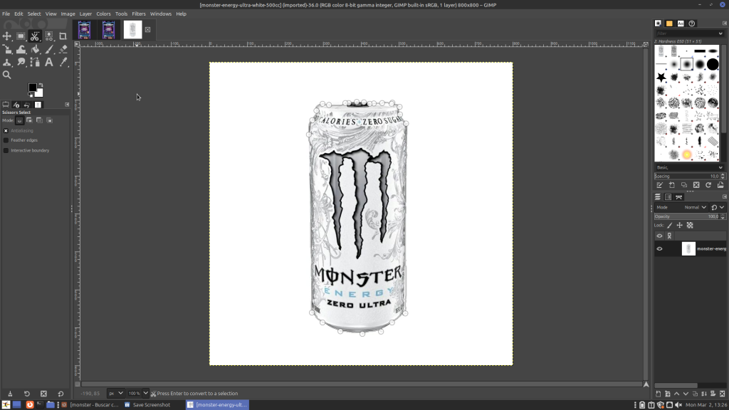He posat una beguda i amb la 3a funció i utilitzant les tisores, he retallat al voltant de la beguda i he fet un Ctrl+x per retallar l’imatge
